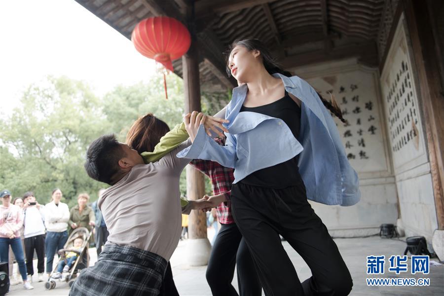 10月26日,一个剧团在乌镇街头表演戏剧。 新华社记者翁忻旸摄