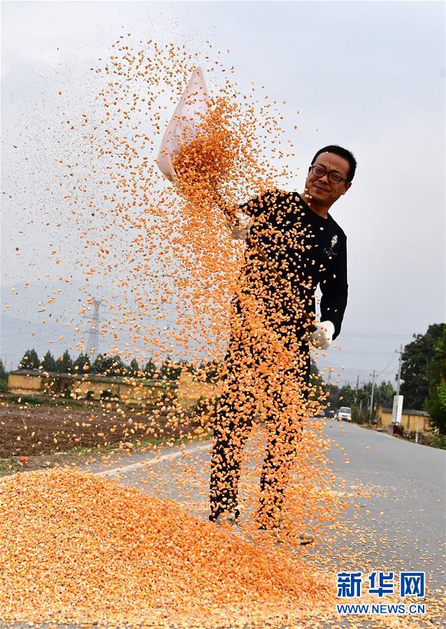 产粮大省的别样秋色在河南省巩义市西村镇滹沱村,村民在晾晒玉米(10月24日摄)。新华社记者冯大鹏摄