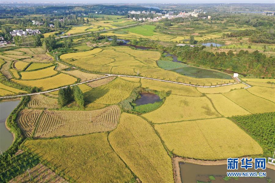 河南省信阳市光山县文殊乡东岳村的稻田(9月4日无人机拍摄)。新华社记者冯大鹏摄