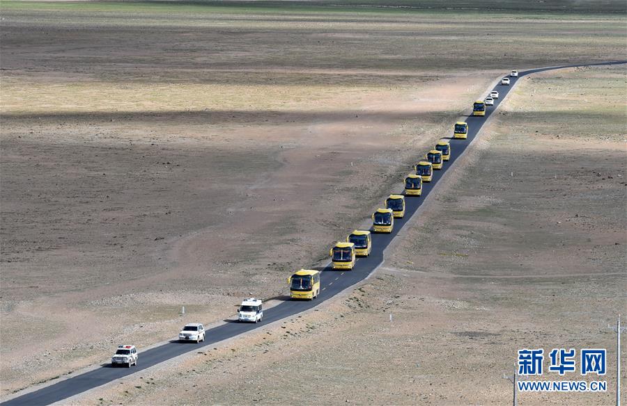 藏北那曲市尼玛县荣玛乡群众在迁往拉萨的途中(2018年6月18日摄)。新华社记者觉果摄