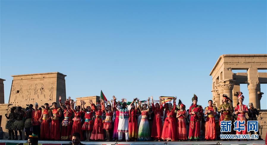 10月27日,演员在位于埃及阿斯旺的菲莱神庙表演。 新华社记者 邬惠我 摄
