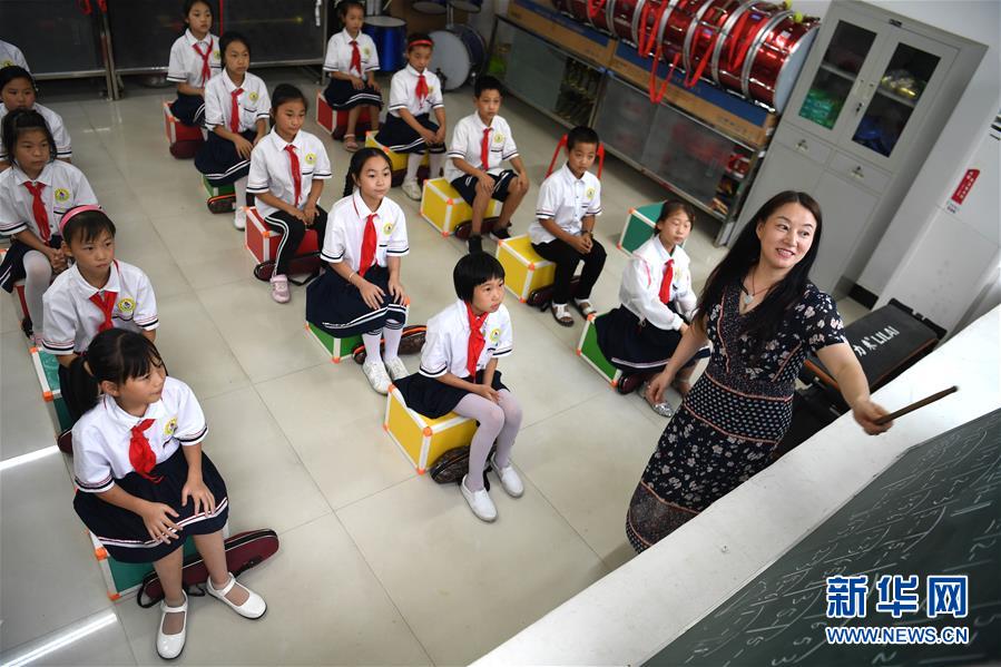9月3日,金寨县希望小学学生在上音乐课。新华社记者刘军喜摄