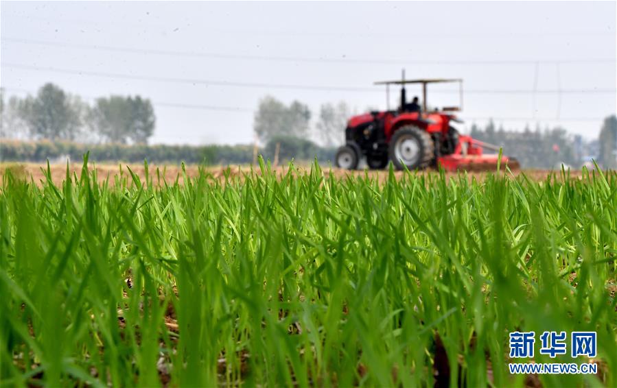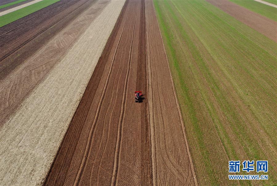 河南省宝丰县赵庄镇周营村农民驾驶机械在农田里犁地(10月17日摄)。新华社记者李嘉南摄