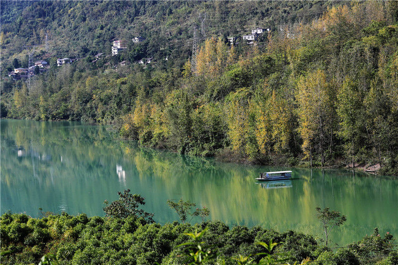 2019年10月28日,重庆市黔江区在乡村振兴建设中,加强对阿蓬江国家湿地公园的保护,对阿蓬江流域进行综合治理、为河道建防洪护岸、保护野生动植物资源、恢复重建湿地资源,同时,打造阿蓬江沿线最美乡村旅游带。深秋时节,阿蓬江湿地公园,层林尽染,河水碧透,如同一幅美丽的画卷,美不胜收。杨敏/视觉中国 编辑/陈进