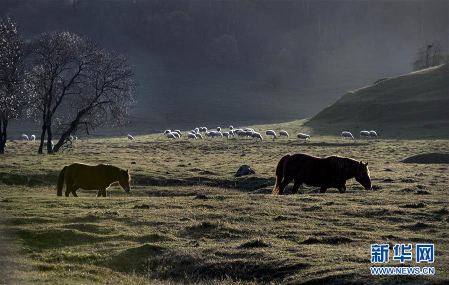 10月28日拍摄的夕阳下的陇县关山草原景色。 新华社记者陶明摄
