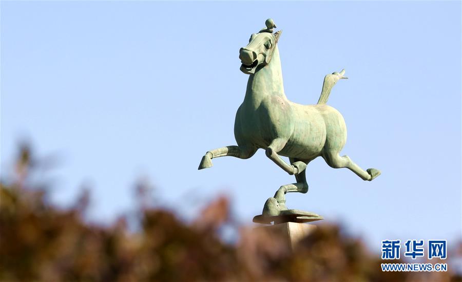 10月30日,在雷台汉墓景区,这是中国旅游标志“马踏飞燕”雕塑。 新华社记者 郭刚 摄