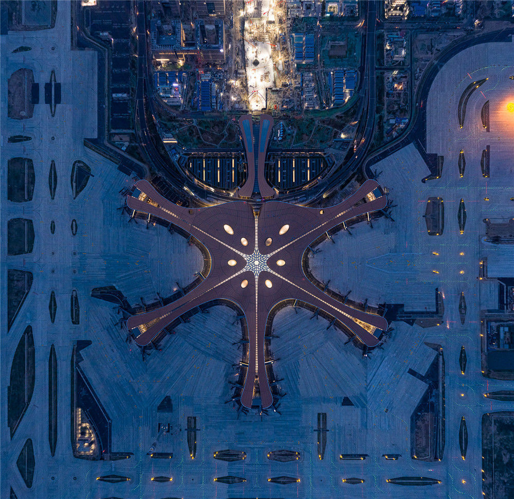 2019年,北京,航拍大兴国际机场夜景。汪洋/视觉中国