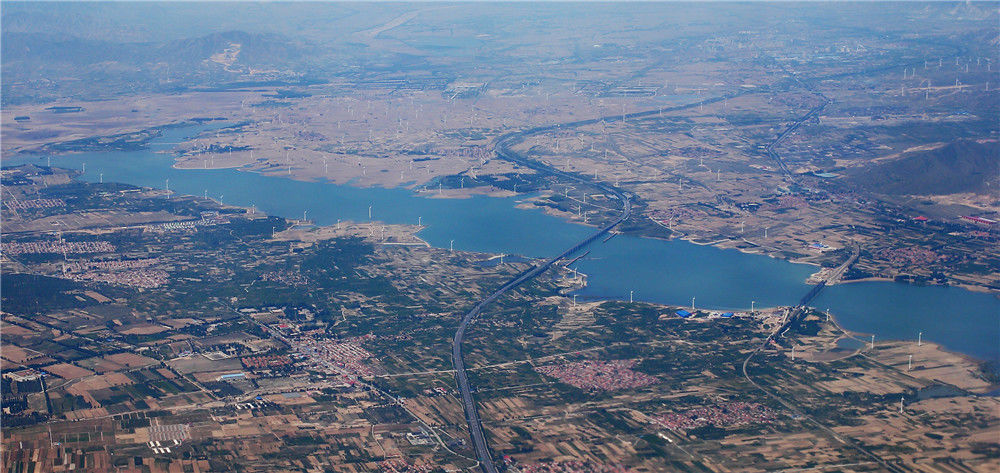 2016年5月13日,北京,航拍官厅水库,白色风机林立。凡宋/陈维松/视觉中国