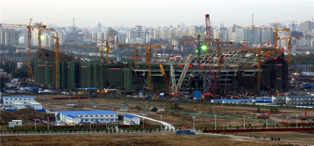 2005年10月28日,2008年北京奥运会主体育场——中国国家体育场(俗称“鸟巢”)正在加紧施工中。申吉/袁新海/视觉中国