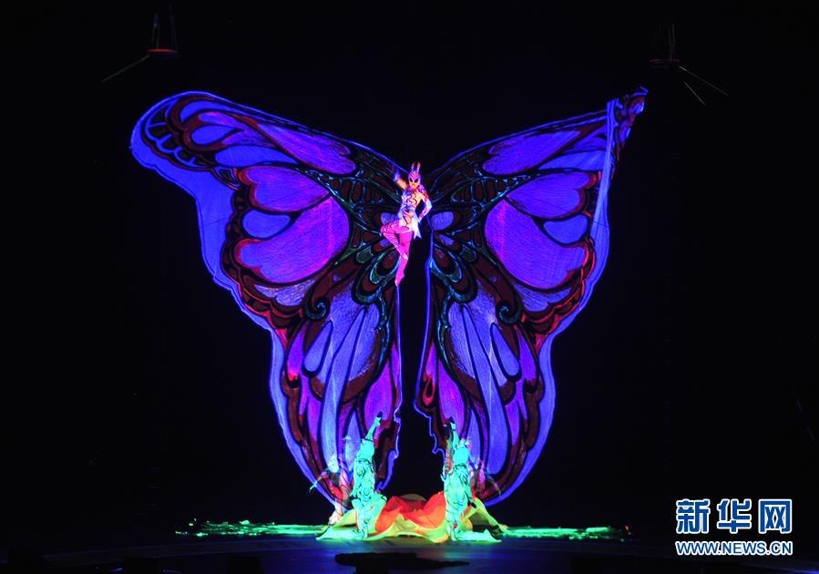 11月3日,来自俄罗斯的演员在表演《“蝴蝶”——夜光空中飞人》。 新华社记者 牟宇 摄