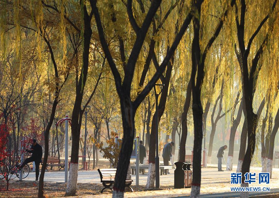 11月3日,市民在银川市凤凰公园内晨练。新华社记者 贾浩成 摄