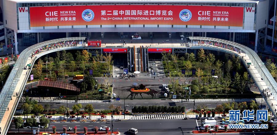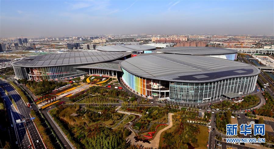 从空中俯瞰国家会展中心(上海)南广场(11月1日无人机拍摄)。 新华社记者 凡军 摄