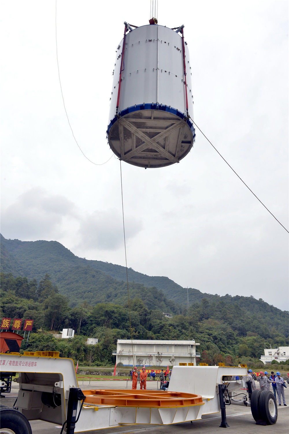 2019年10月24日,四川凉山,卫星吊装上塔。