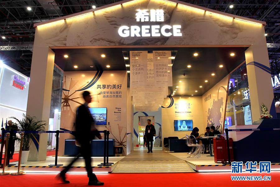11月5日,参观者走过希腊国家馆。新华社记者陈飞摄