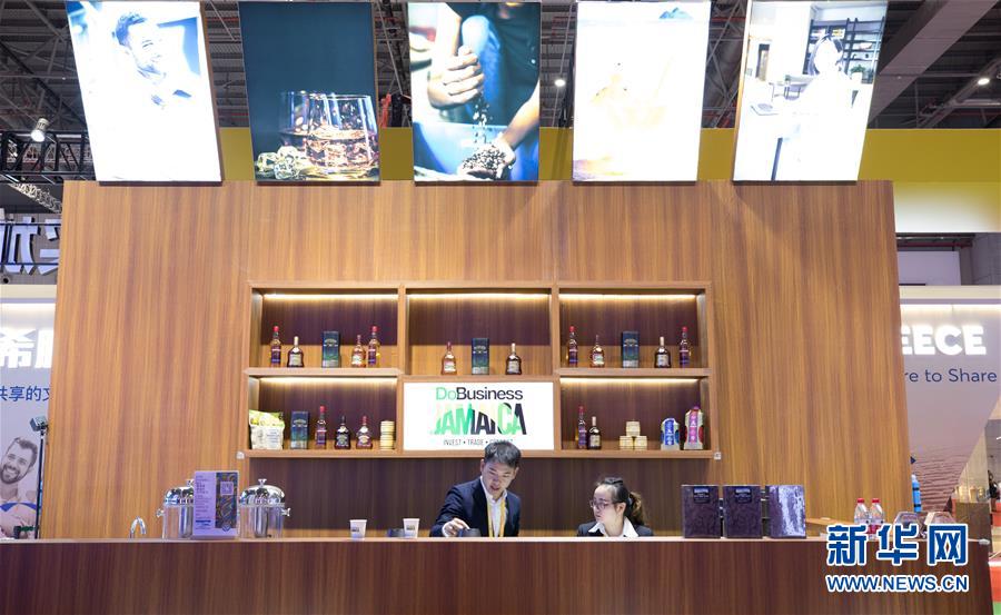 11月5日,工作人员在牙买加国家馆整理展品。新华社记者金立旺摄
