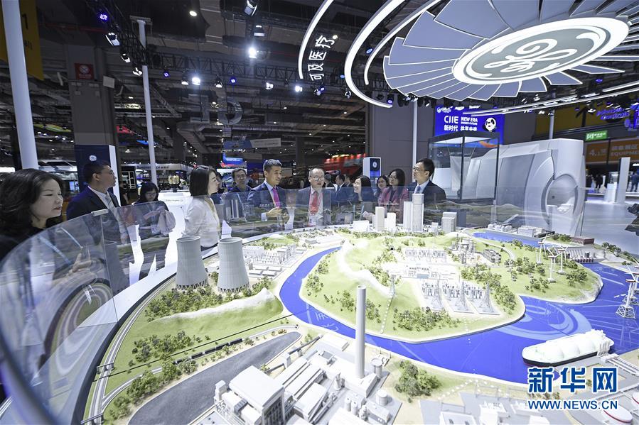 11月5日,观众在美国通用电气展位参观。新华社记者王鹏摄