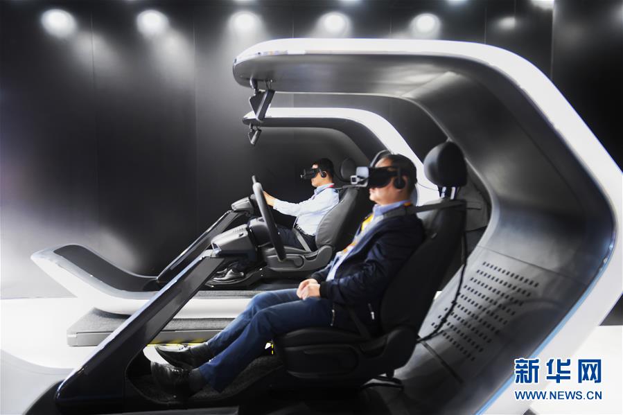 11月5日,在第二届进博会汽车展区,参观者体验韩国起亚汽车驾驶。新华社记者普布扎西摄