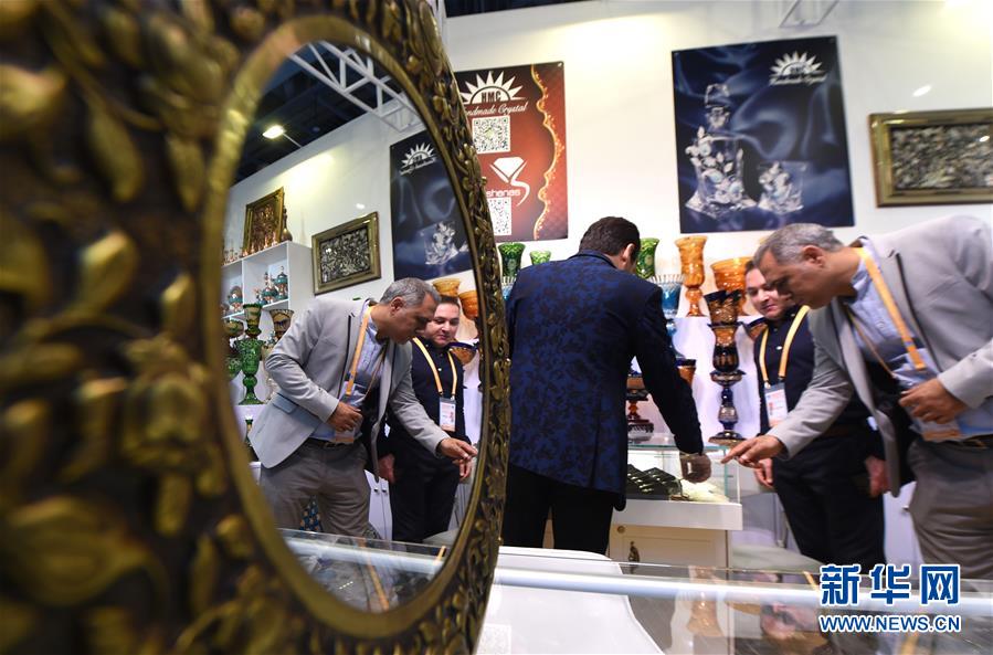 11月5日,伊朗参展商在第二届进博会服务贸易展区的展台前忙碌。新华社记者尹炣摄