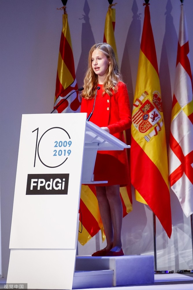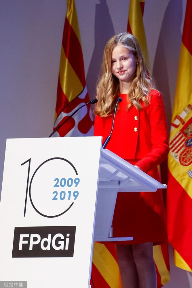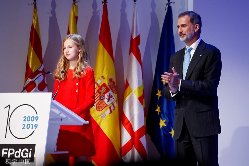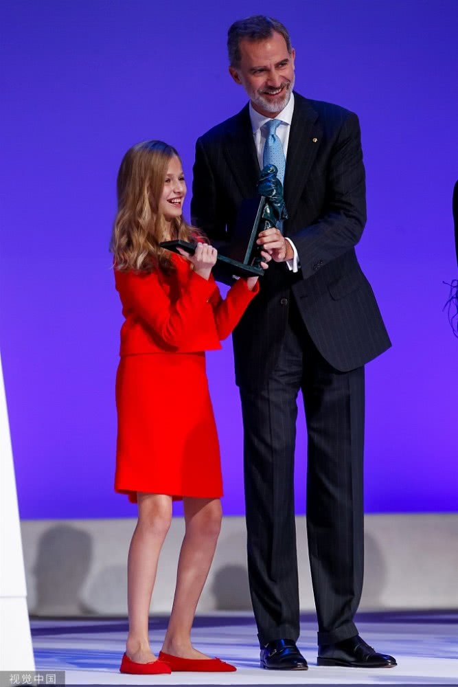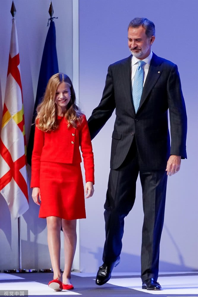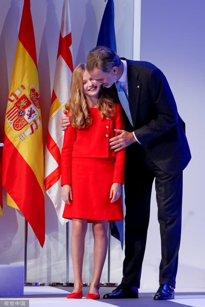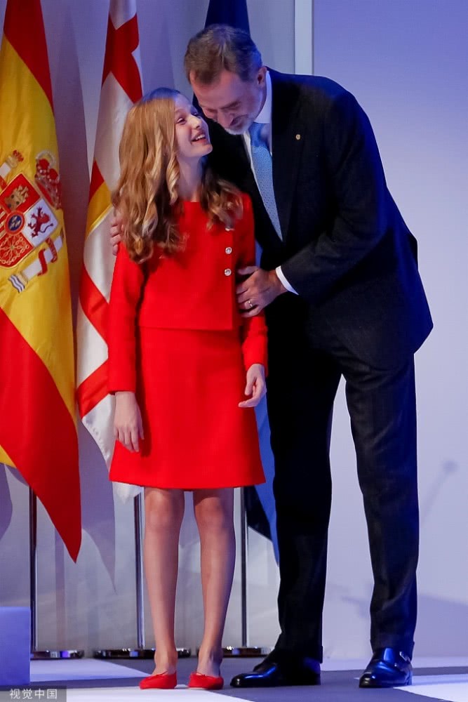 莱昂诺尔公主穿红裙气质优雅美貌才华并重,和父亲费利佩六世有爱互动超温馨。
