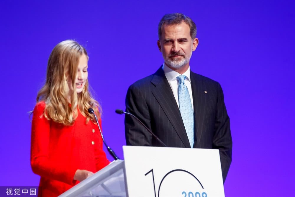 14岁西班牙女王储颁奖礼上演讲,气质优雅继承王后美貌,亭亭玉立。