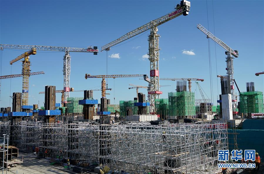 京雄城际铁路雄安站总建筑面积47万平方米,地上3层,地下2层,其中地下主体结构将于近期完成,即将转入地上主体结构施工。新华社记者邢广利摄