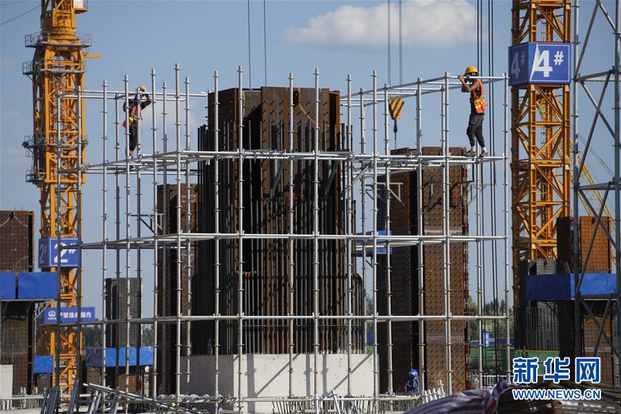 8月27日,工人在雄安站施工。新华社记者邢广利摄