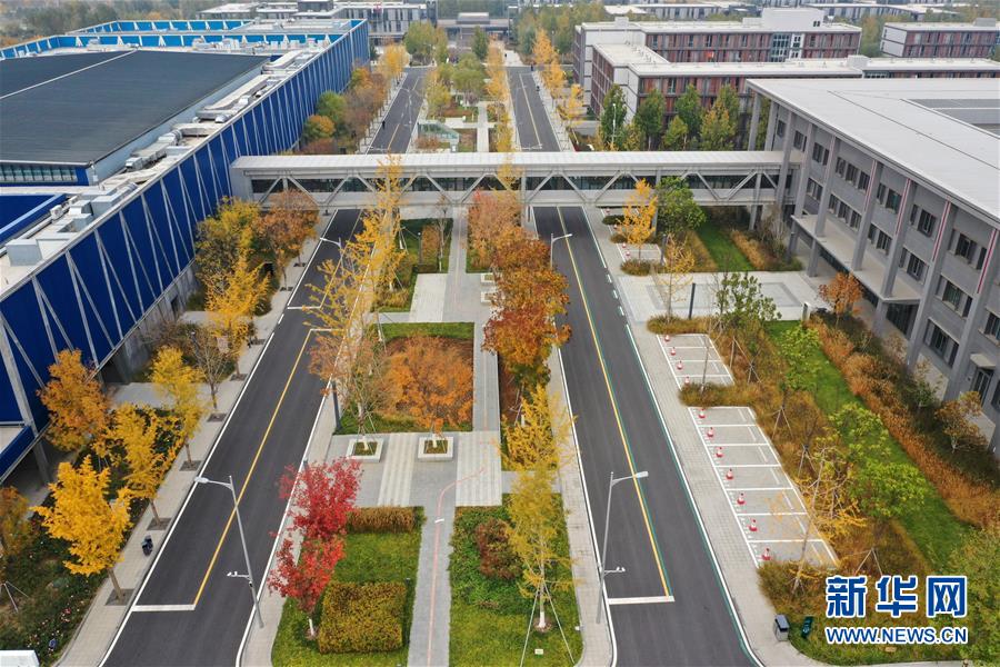 11月6日拍摄的雄安新区市民服务中心(无人机拍摄)。深秋时节的雄安新区色彩斑斓,景色宜人。新华社记者邢广利摄