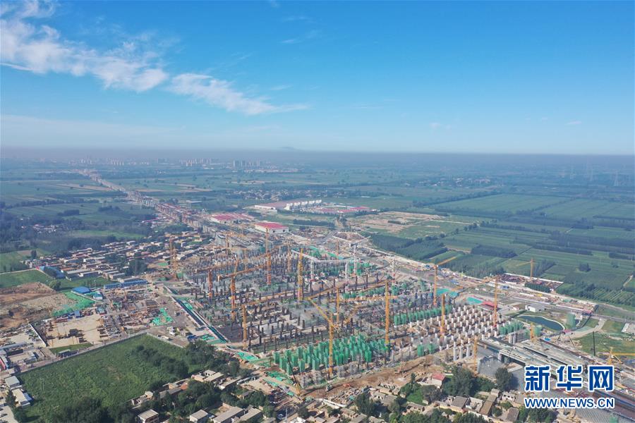 京雄城际铁路雄安站总建筑面积47万平方米,地上3层,地下2层,其中地下主体结构将于近期完成,即将转入地上主体结构施工。新华社记者邢广利摄
