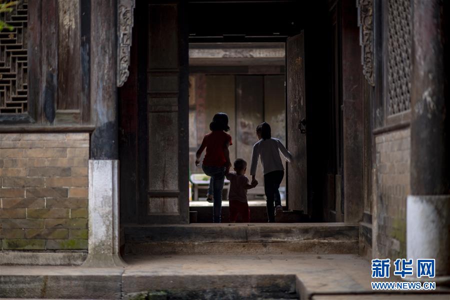 石屏县异龙镇符家营村的小朋友们在村里的老屋玩耍(8月8日摄)。新华社记者江文耀摄