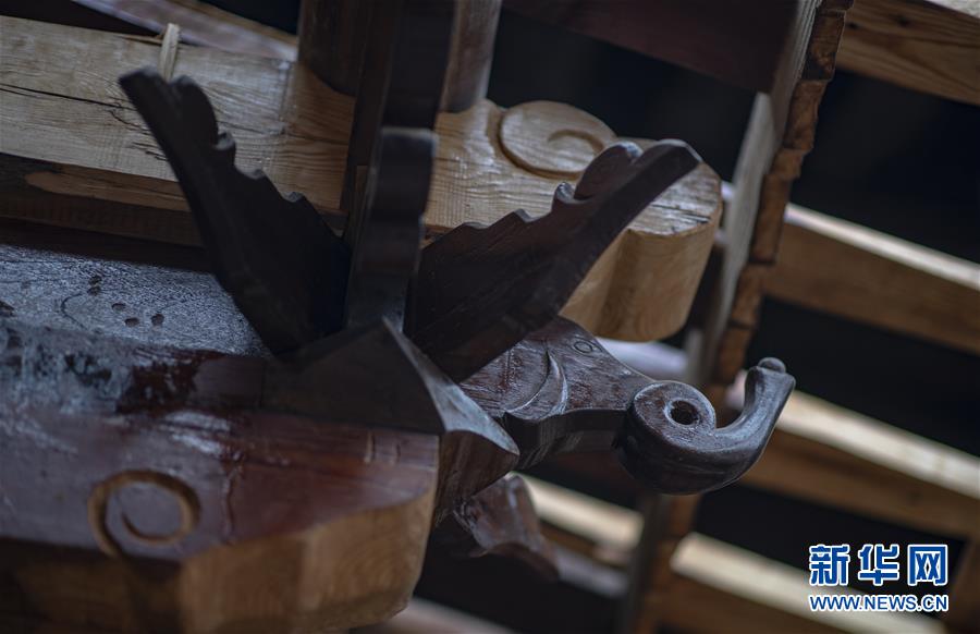 石屏县异龙镇符家营村211号民居中修缮完成的木斗拱(8月8日摄)。新华社记者江文耀摄