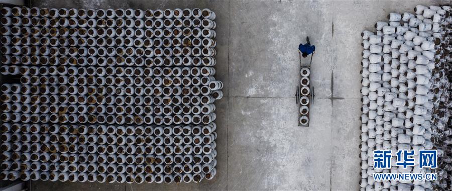 11月7日,古越龙山绍兴酒股份有限公司酿酒一厂的工人用手推车运送酒坛,开启黄酒“冬酿”序幕(无人机拍摄)。新华社记者徐昱摄