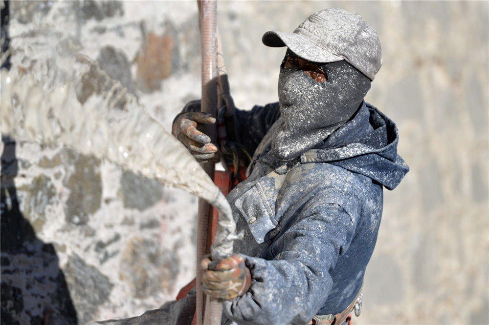 2019年11月06日,西藏拉萨,工人为布达拉宫喷洒颜料。