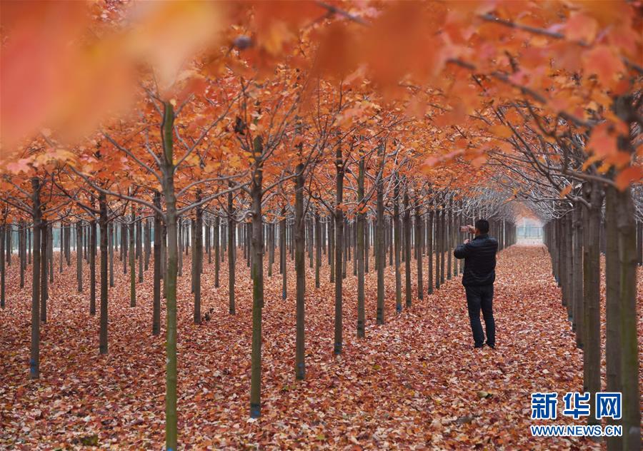近日,山东省日照市五莲县世丰农业基地的红枫林绚烂似火,“枫景”如画。新华社记者王凯摄