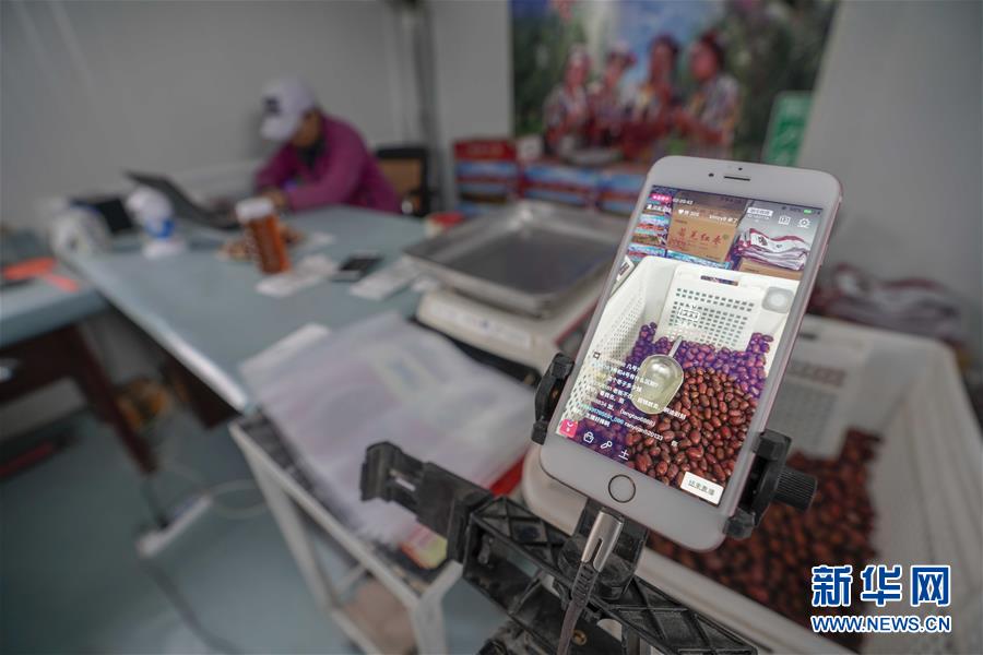 陈晓明的妻子王慧在进行网络直播(10月29日摄)。新华社记者赵戈摄