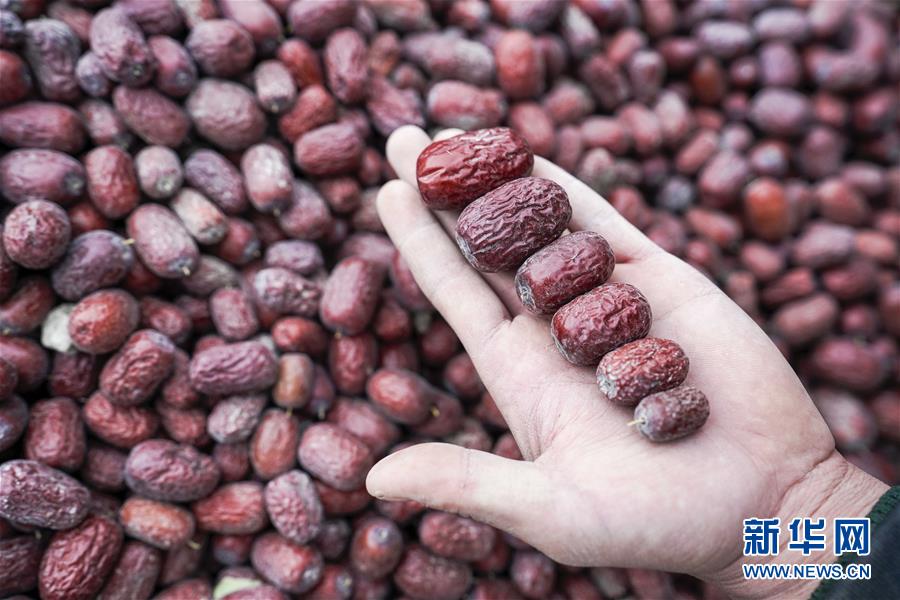 这是陈晓明在展示分过级的红枣(10月29日摄)。新华社记者赵戈摄