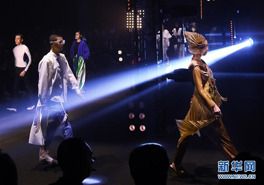 11月9日,模特在闭幕仪式上展示服装。 当日,为期3天的2019青岛世界大学生时尚设计大赛在山东省青岛市落下帷幕。据介绍,本次大赛展示了国内外25所设计院校的青年设计师的50套服装作品。 新华社记者 李紫恒 摄