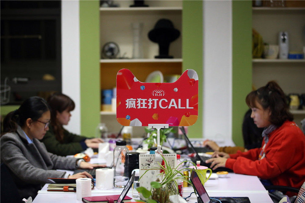 2017年11月11日凌晨,江苏南通,网店的售前客服们正在回答买家的问题。徐培钦/视觉中国