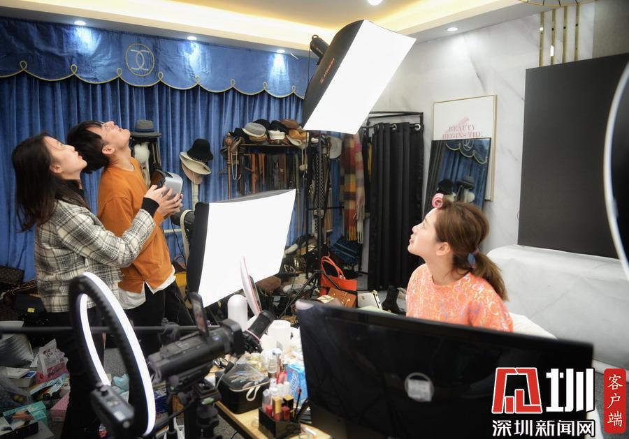 2019年11月10日报道,主播“大英子”和助手正在测试即将推荐给网友的投影仪。
