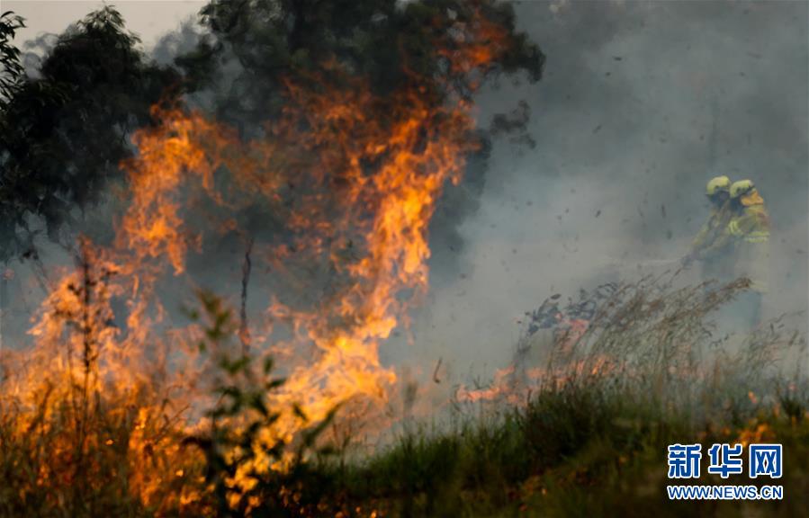 11月11日,在澳大利亚新南威尔士州塔里附近的山地,消防员在扑灭山火。新华社记者白雪飞摄