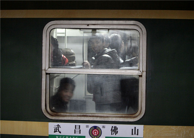 2015年2月5日,3064次即将开车,乘客们上车整理行李。当天,记者体验首趟佛山始发临客 无空调半夜冻醒。陈志刚/视觉中国