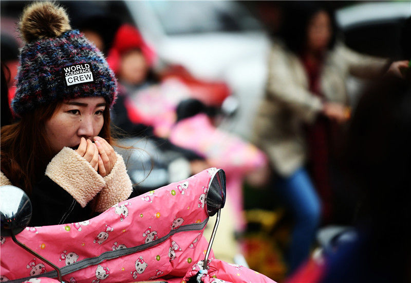 2016年1月11日,在安徽省亳州市街头,市民正在冒着雨雪天气出行。张延林/视觉中国