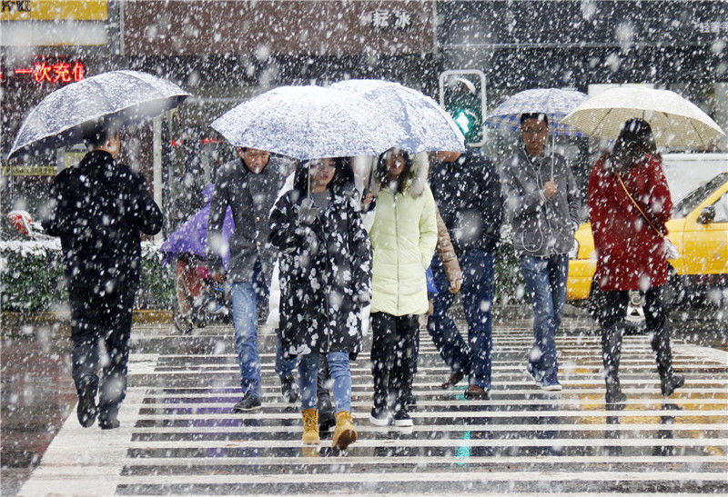 不要以为南方一年四季暖如春,赶上降雪、寒潮的时候,南方的冷那也是直入骨髓的级别。穿上厚厚的衣物,裹得像只熊,我们才敢迈步出门。2018年12月10日,行人在安徽省亳州市区街头冒雪出行。刘勤利/视觉中国 编辑/陈进