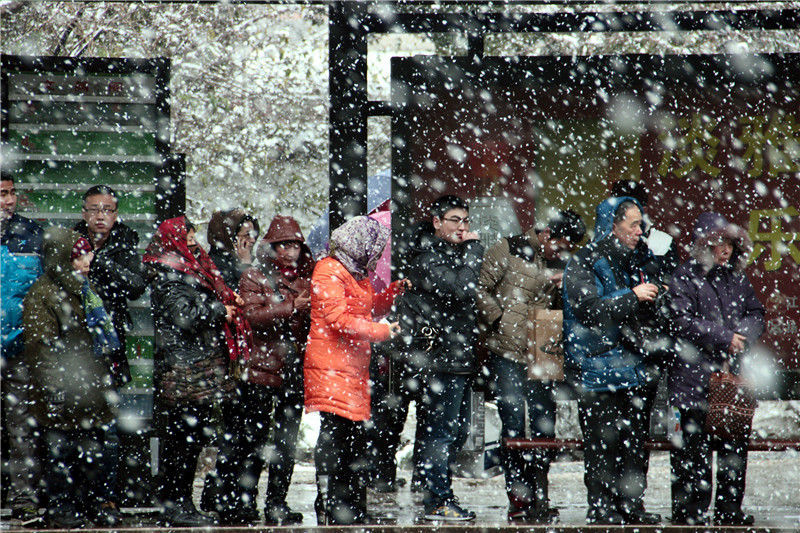 2015年1月27日,安徽省合肥市,当日上午10时,合肥市迎来今冬首场降雪,这是2015年安徽省的首场降雪,据安徽省气象台消息,未来一周安徽全省都将出现连阴雨雪天气。张大岗/视觉中国