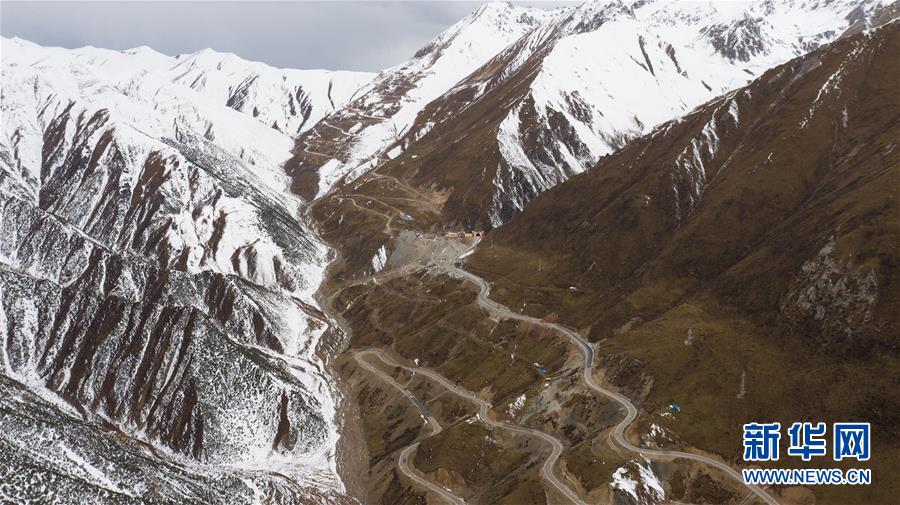 这是318国道剪子弯山段,大雪过后银装素裹(10月17日无人机拍摄)。新华社记者江宏景摄