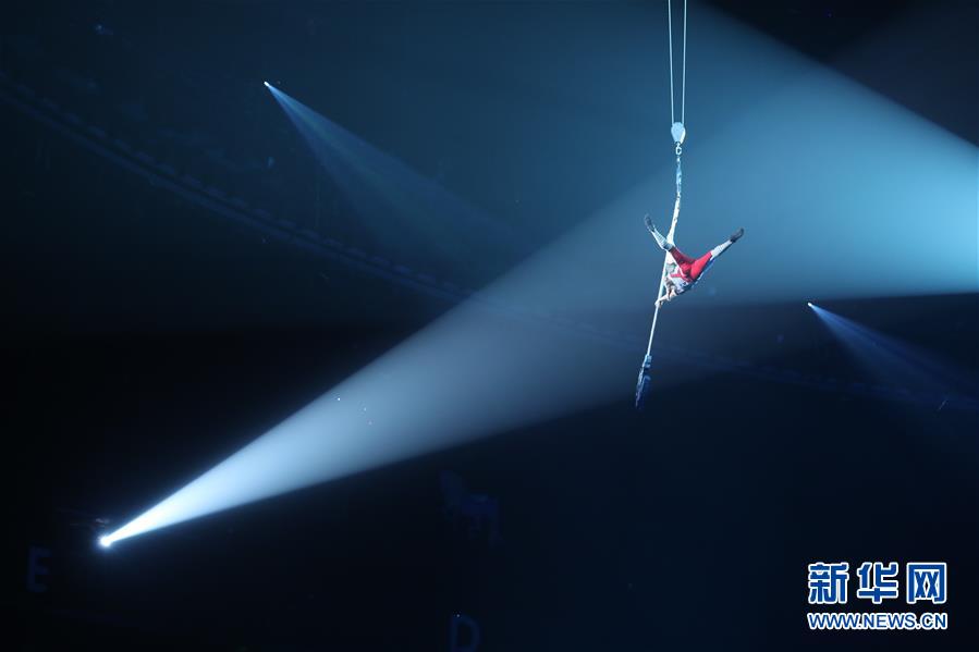 11月16日,演员在第六届中国国际马戏节开幕式上表演节目。新华社记者卢烨摄