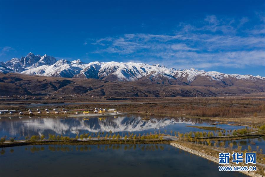 317国道边的四川甘孜县雅砻江湿地公园(11月3日无人机拍摄)。新华社记者江宏景摄