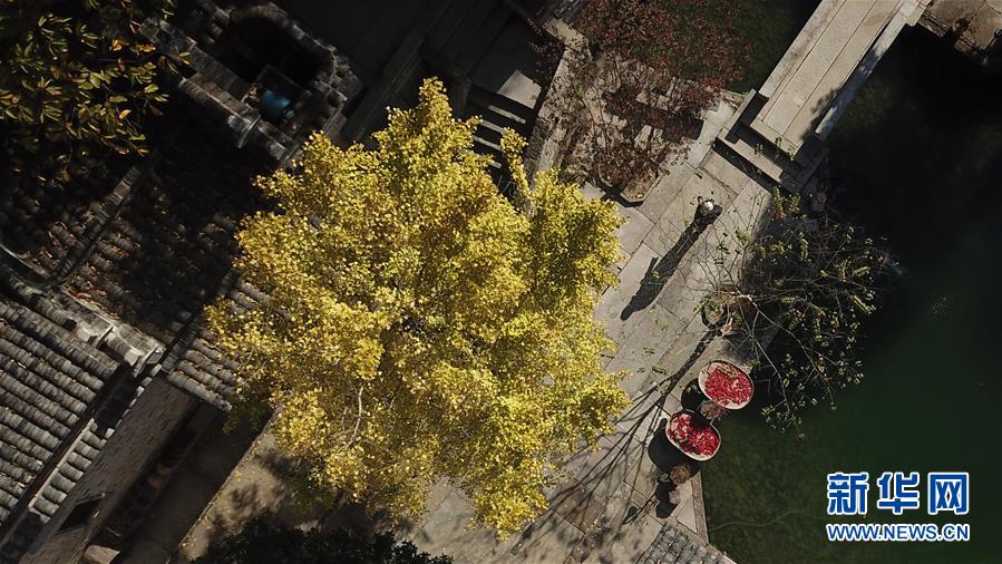 这是11月15日无人机拍摄的安徽黟县宏村一家民宿的院落。新华社记者张端摄