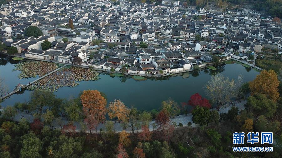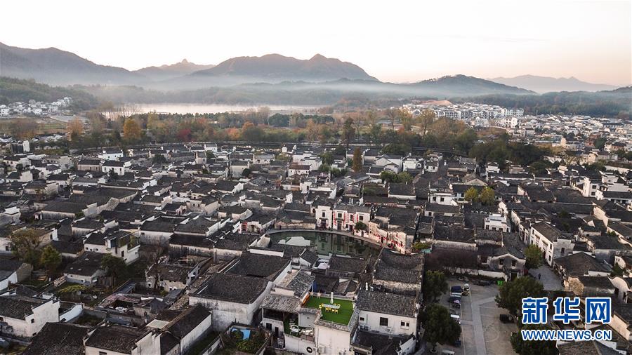 这是11月15日无人机拍摄的宏村风景区晨景。新华社记者韩晓雨摄