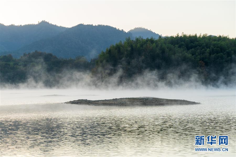 这是11月15日无人机拍摄的安徽黟县奇墅湖晨景。新华社记者张笑宇摄