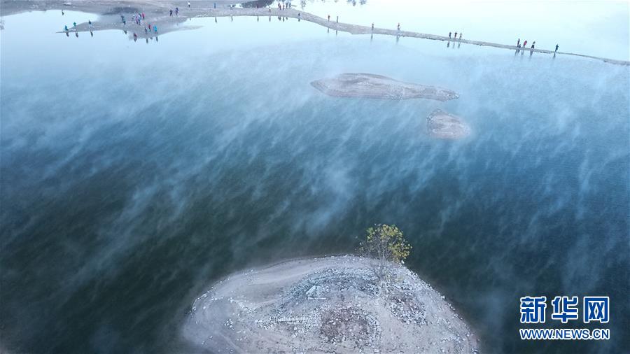 这是11月14日无人机拍摄的安徽黟县奇墅湖晨景。新华社记者张端摄